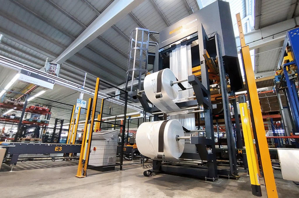 - Sistema Stretch Hood: Utiliza un único film tubular que se adapta totalmente a la carga, eliminando el exceso de plástico y ofreciendo una protección total.